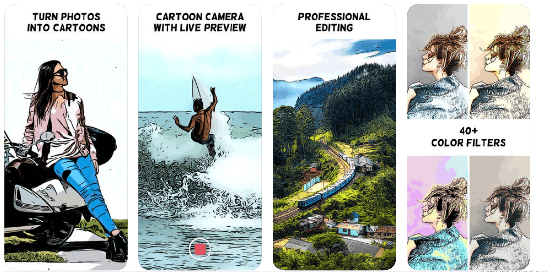 Este primer programa es ideal para caricaturizar las fotos, de una manera muy fácil. Ofrece diferentes herramientas, las cuales son sencillas de manejar. Cuenta con una interfaz muy básica, donde indica los pasos a seguir para lograr aplicar el efecto de una imagen caricaturizada. Está disponible sólo en IOS y sin ningún costo.