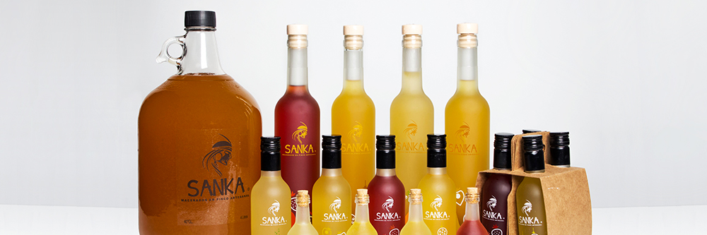 Sanka ofrece a sus clientes una variedad de macerados de diferentes sabores agradables para preparar ricos tragos y amenizar reuniones entre amigos o familiares. Sus piscos contienen 10 kilos de uva por litro y las frutas que utiliza son de la mejor calidad.